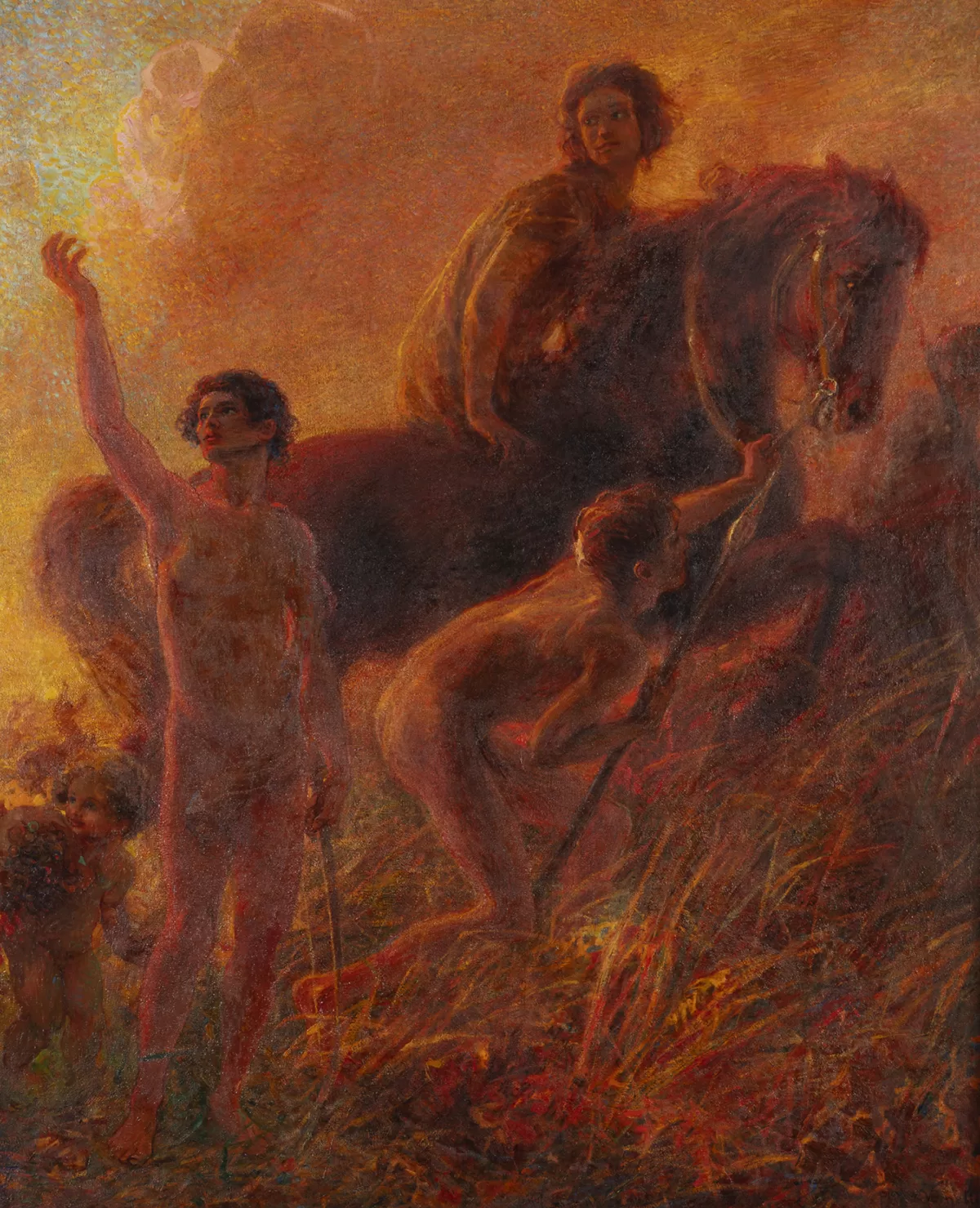 La pittura di storia in Italia veniva progressivamente rielaborata alla luce di una nuova sensibilità alimentata e da un rinnovato interesse per il mito. I soggetti dell’antico cessavano di essere trattati in chiave narrativa per assumere una dimensione evocativa e sacrale. In questo contesto si collocavano i percorsi di Francesco Netti, Cesare Maccari Domenico Morelli, Giulio Bargellini, Luigi Conconi.